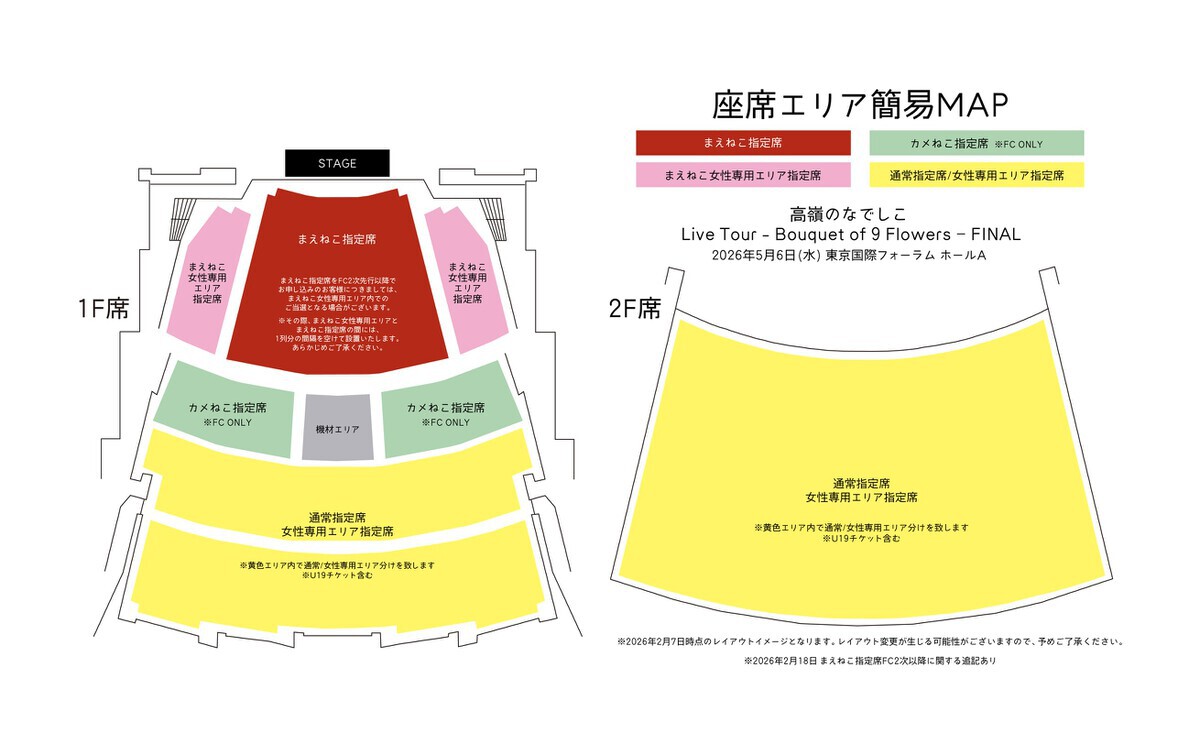 まえねこ指定席をFC2次先行以降でお申し込みのお客様につきましては、座席エリア簡易MAPに記載の「まえねこ女性専用エリア」内でのご当選となる場合がございます。